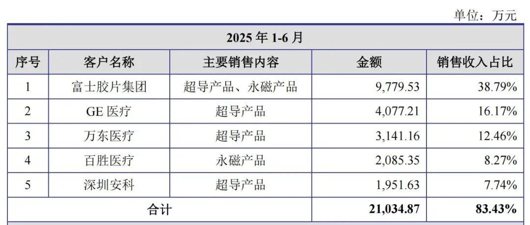 12月24日,来自宁波慈溪市的健信超导(股票代码:688805。SH)正式登岸科创板,刊行价18。58元/股,首日开盘价较刊行价上涨249。84%报65元/股,总市值约110亿元。正在医疗设备国产化海潮中,公司自从研发的1。5T无液氦超导磁体打破国际垄断,使我国成为全球第三个控制该手艺的国度。其产物笼盖GE医疗、联影医疗、富士等国际头部零件厂商,配套MRI设备超50%出口至欧美新兴市场。2024年全球超导磁体市占率达4。2%,位列供应商首位,正在永磁磁体范畴更以61%的市占率稳居全球第一。这家“冠军”的兴起背后,是持续的手艺攻坚取财产结构。历经多年手艺攻坚,公司正在焦点手艺上实现了从跟跑到领跑的逾越——正在无液氦超导手艺范畴,健信超导独创全固态传导冷手艺,研制成功的1。5T无液氦超导磁体,正在焦点参数、机能目标取产物成本等方面均处于国际领先程度,打破液氦依赖的行业痛点,相关产物已实现全球规模化贸易使用。如公司董事长许建益正在演中所言,“坐正在新的成长起点,公司将践行全球化计谋,通过手艺迭代强化自从立异,进一步控制并冲破MRI行业焦点部件手艺,引领MRI行业手艺成长。同时,联袂客户拓展超导焦点手艺使用鸿沟,勤奋成长为全球磁共振焦点部件行业的带领品牌。”从乡镇企业到科创板上市企业,健信超导的折射出中国高端制制的突围径。这家从慈溪小县走出的企业,正以“硬核科技”沉塑全球超导磁体财产款式。当大大都人想起富士时,脑海中浮现的大概是其常常卖断货的复古彩色菲林和拍立得相纸。不为人知的是,这家以消费影像闻名的日本巨头,正在高端医疗设备范畴同样深耕多年。而其全球财产链中的环节一环,恰是今日所配角——健信超导。健信超导的上市之,刻着深深的“富士”印记。正在2022年至2024年的演讲期内,富士集团一直是其无可争议的第一大客户,贡献的营收占比别离高达34。20%、44。20%和42。71%,即便正在2025年上半年,这一比例仍维持正在38。79%的高位。